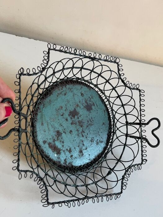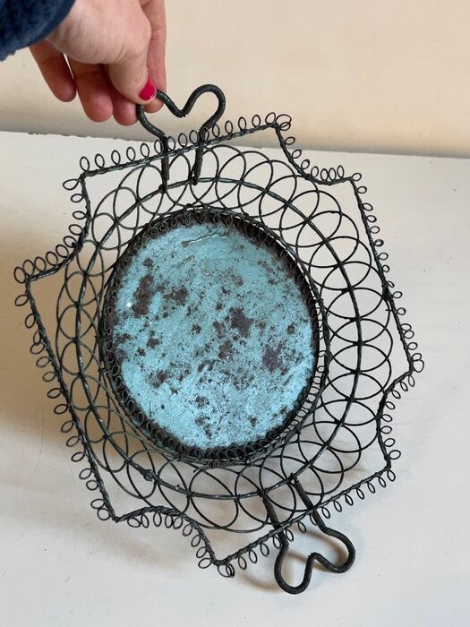Materiaal: ijzerdraad, groen van oorsprong, behoudt zijn fijne ouderdomspatina. GEEN PAUZES.