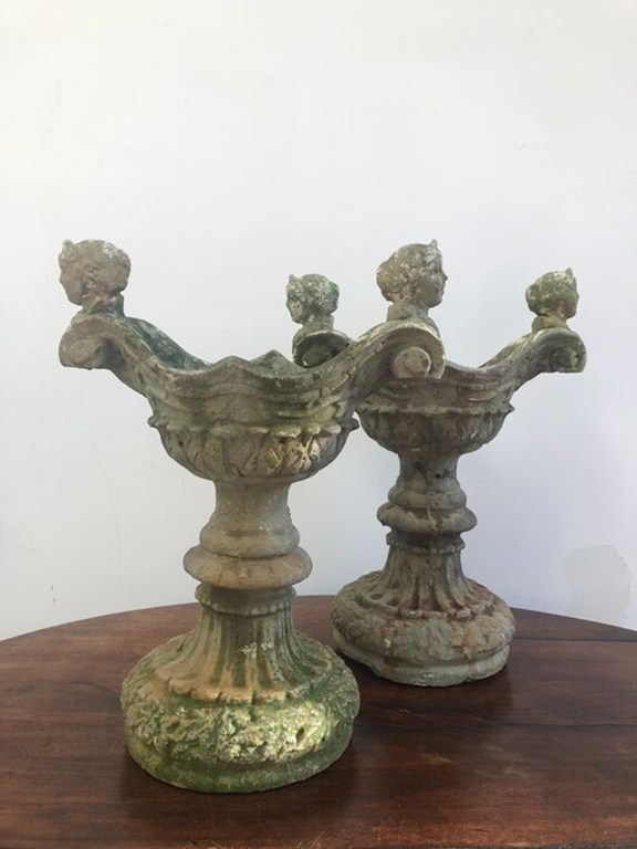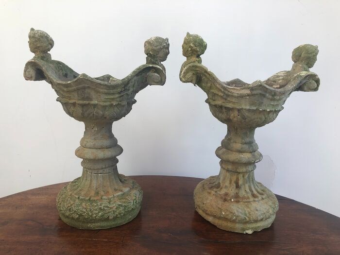 The vases have served as garden decoration for a long time, so they have some green (removable) deposits.