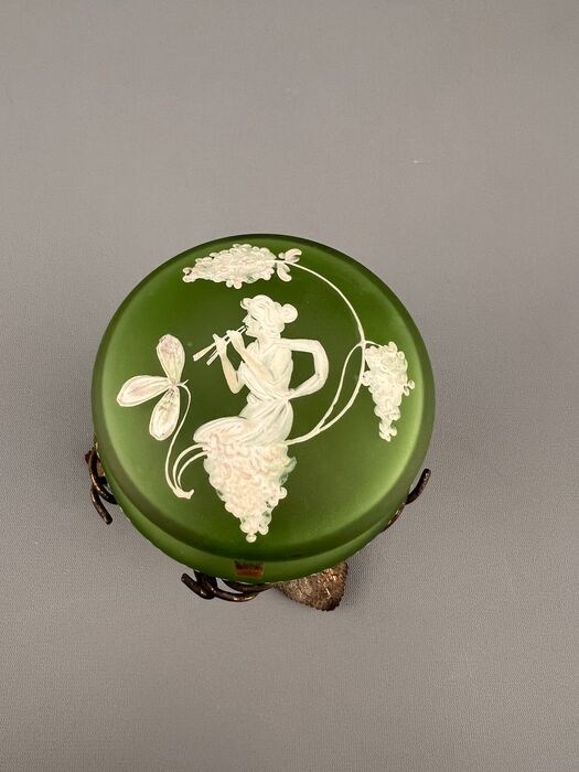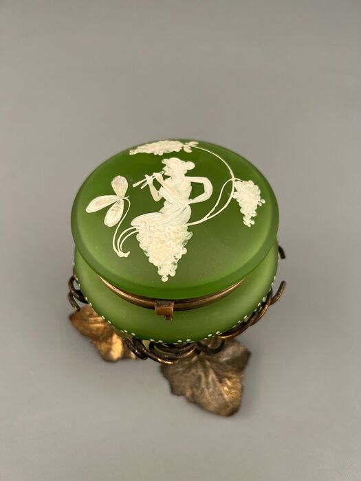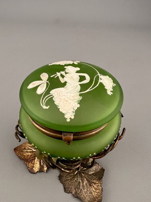 Mooie franse suikerpot gemaakt van opaline glas en brons
