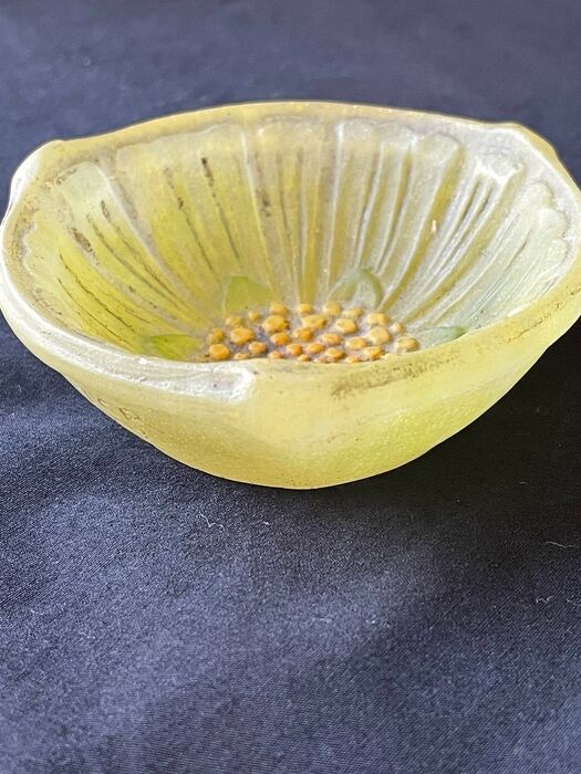 Prachtige kleine kom of lege zak in glaspasta gesigneerd Amalric Walter en Henri Bergé