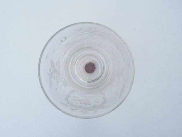 In de bodem van het glas is een open ruimte, waarin een munt is geplaatst. Deze munt is gedateerd 1787 en heeft de tekst: Stad Utrecht. Aan de andere zijde van de munt staat het wapen van de stad Utrecht.