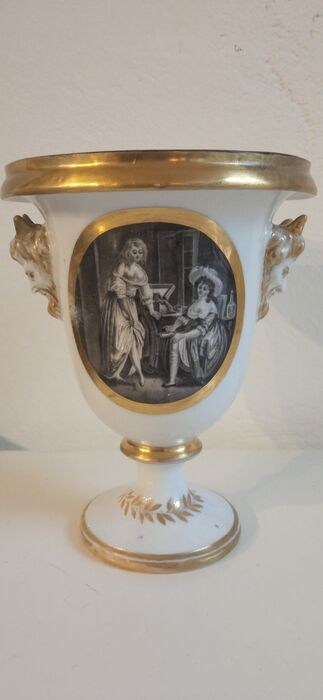 Zeldzame en mooie Franse porseleinen vaas/kelk. Uit het begin van de 19e eeuw.