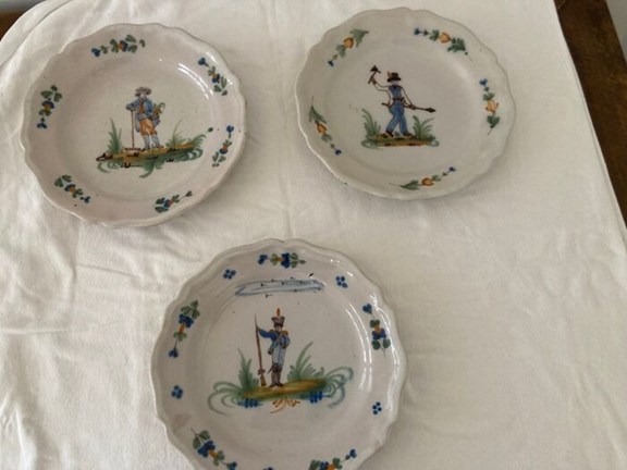 Lot van drie revolutionaire assistenten in faïence à bord contourné