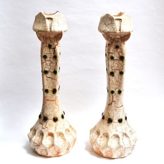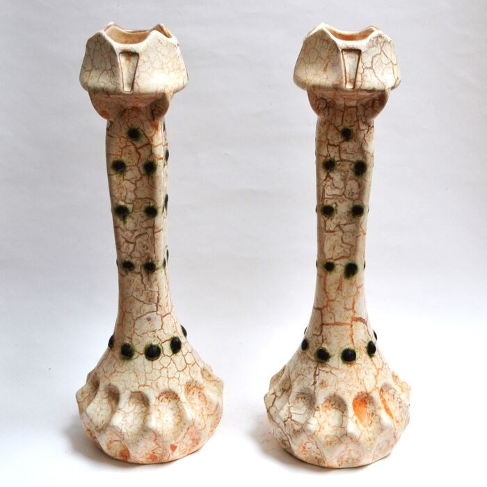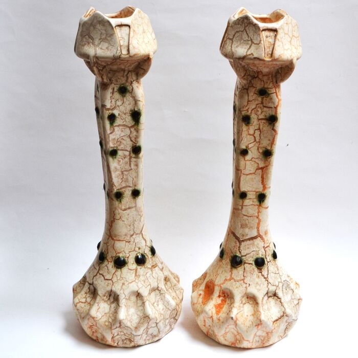 A set of large Jugendstil glazed ceramic vases. Germany, circa 1900. Marked. 40 cm in height.