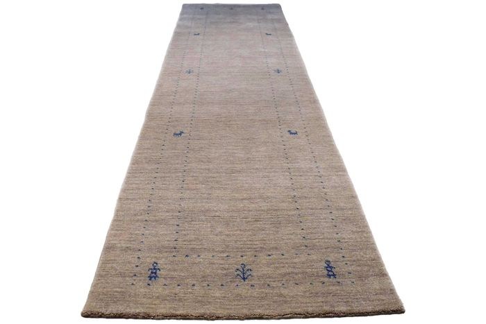 Uitstekend ongebruikt lang modern groen Gabbeh loper vloerkleed. Maat ca. 296x82 cm.
