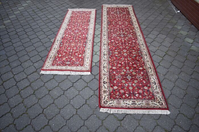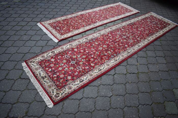 Eersteklas en buitengewone schoonheid, origineel en exclusief 2 runners Ghom handgeweven en gemaakt van de hoogste kwaliteit Wol op katoen bloemencontouren worden benadrukt en gevuld met zijden draad met een kort gesneden, glanzend fleece. Het tapijt wordt bevestigd door een certificaat van kwaliteit en oorsprong. Oosters ontwerp een indrukwekkend medaillon omringd door prachtige bloemstukken en harmonieus contrasterende kleuren zorgen ervoor dat het er heel mooi en waardig uitziet wanneer het wordt uitgeklapt.
