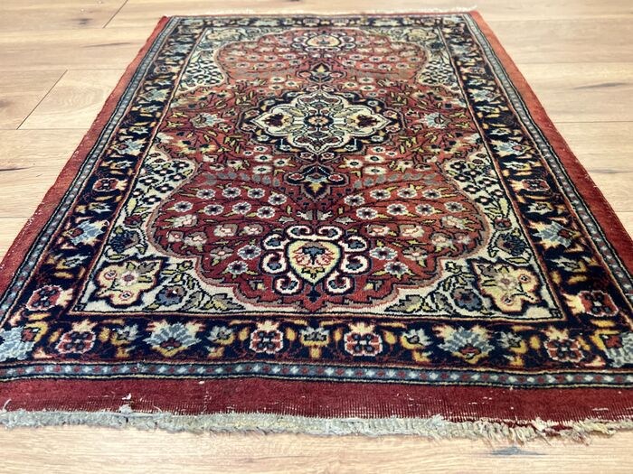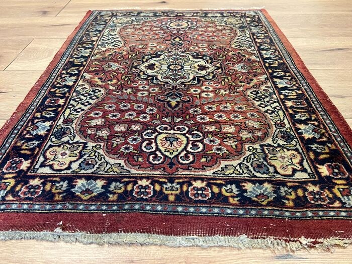 Het tapijt is in goede algehele staat met tekenen van ouderdom en slijtage (minimale slijtage aan de franjes aan de zijkanten, minimale vlekken - zie foto's).