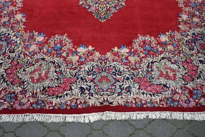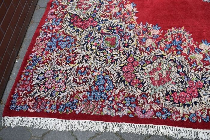 Eersteklas en buitengewone schoonheid, origineel en exclusief Perzisch tapijt Kirman handgeweven en gemaakt van de hoogste kwaliteit wol op katoen bloemencontouren worden benadrukt en gevuld met zijden draad met een kort gesneden, glanzend vlies. Het tapijt wordt bevestigd door een certificaat van kwaliteit en oorsprong. Oosters ontwerp een indrukwekkend medaillon omgeven door prachtige bloemstukken en harmonieus contrasterende kleuren zorgen ervoor dat het er heel mooi en waardig uitziet wanneer het wordt uitgevouwen.
