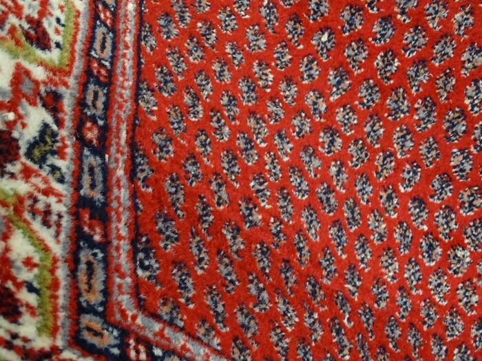 Dit licht gebruikte tapijt is mooier en karaktervoller geworden door het natuurlijke verouderingsproces. Schone en fris gereinigde Mir met lichte sporen van gebruik, klaar voor een tweede leven.