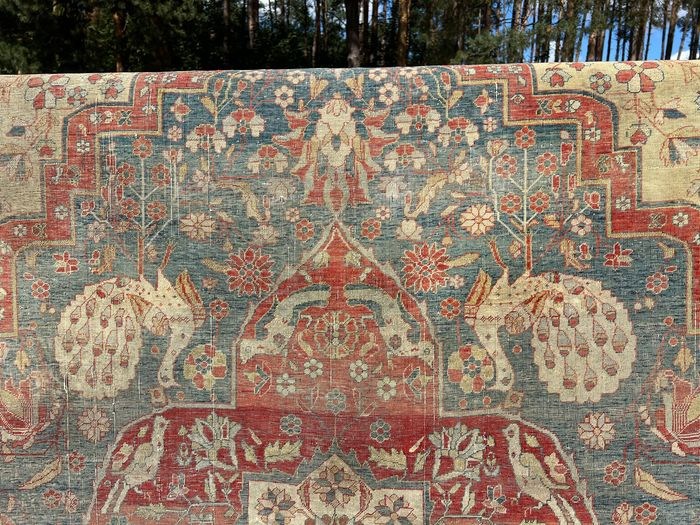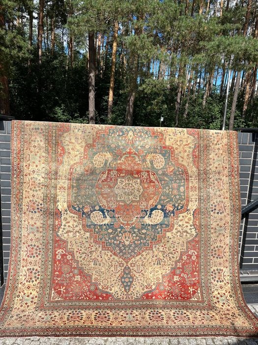 Herkomst : Uniek zeer oud handgeknoopt Tabriz vloerkleed met prachtige kleuren.