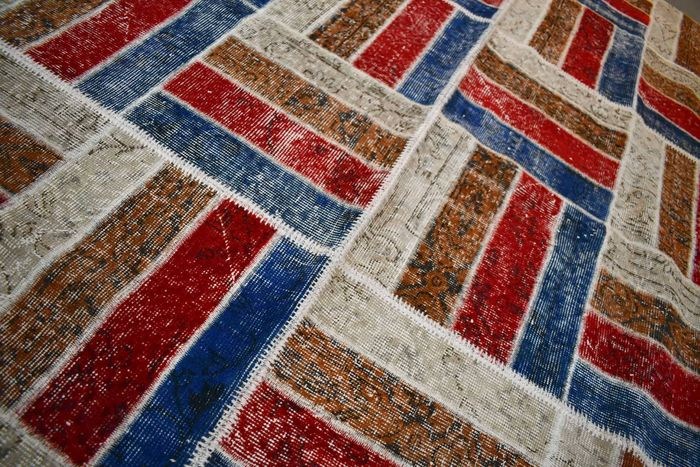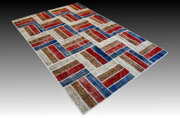 Fascinerend vintage modern patchwork vloerkleed. Maat ca. 235x154 cm. Zeer goede staat en professioneel gereinigd. Klaar voor gebruik.
