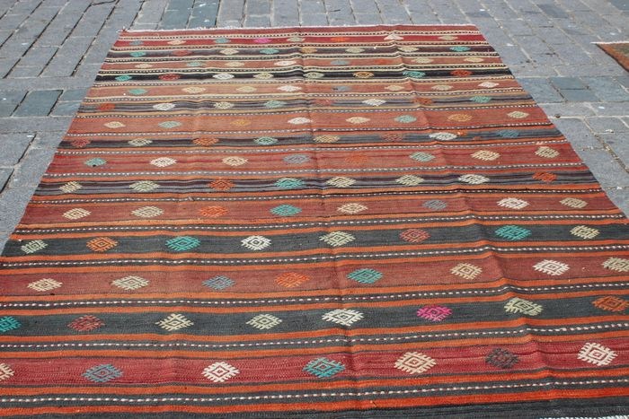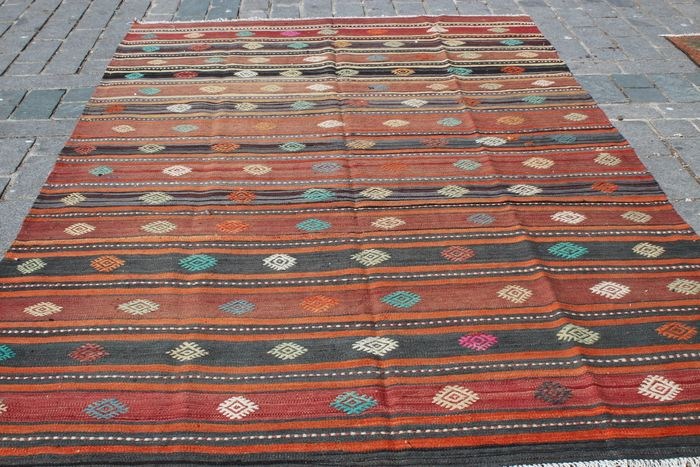 Het is een zeer uniek vintage Turks tapijt, professioneel gewassen en klaar voor gebruik. De leeftijd is ongeveer 1970. Het is een uniek handgemaakt vloerkleed met natuurlijke kleurstoffen. Uitstekende staat.