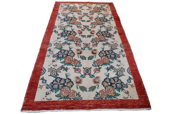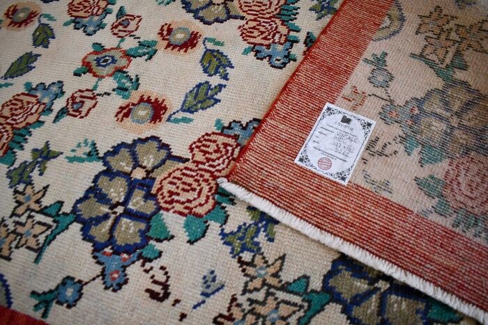 Prachtig vintage gebloemd Oushak vloerkleed. Uitstekende vintage staat, professioneel schoongemaakt en klaar voor gebruik. Maat ca. 197x102cm.