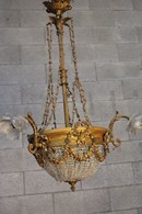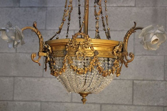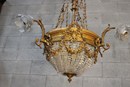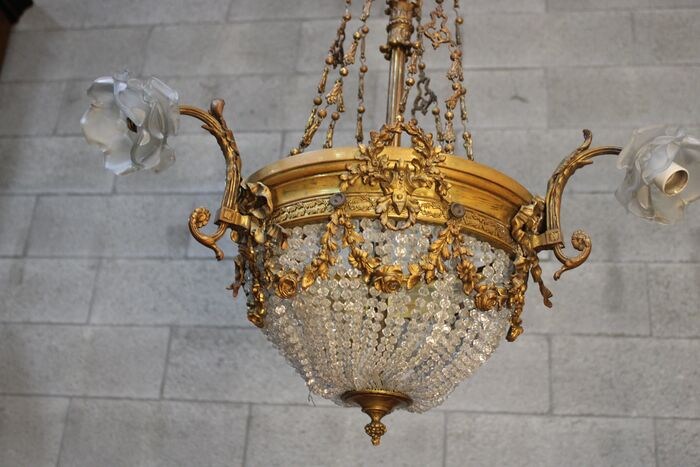 Schitterende Louis XVI-stijl verguld bronzen kristallen kroonluchter, dit 19e-eeuwse stuk is in zeer goede staat en rijk aan bewerkt bronswerk. 55x55x90H cm