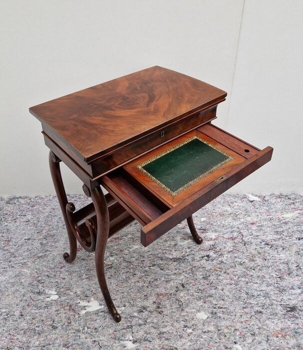 Zeer oud ca. 1820 elegant Schrijf of bijzet tafeltje op Harpvormige poten.