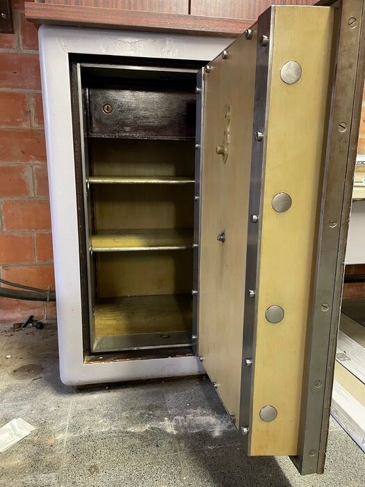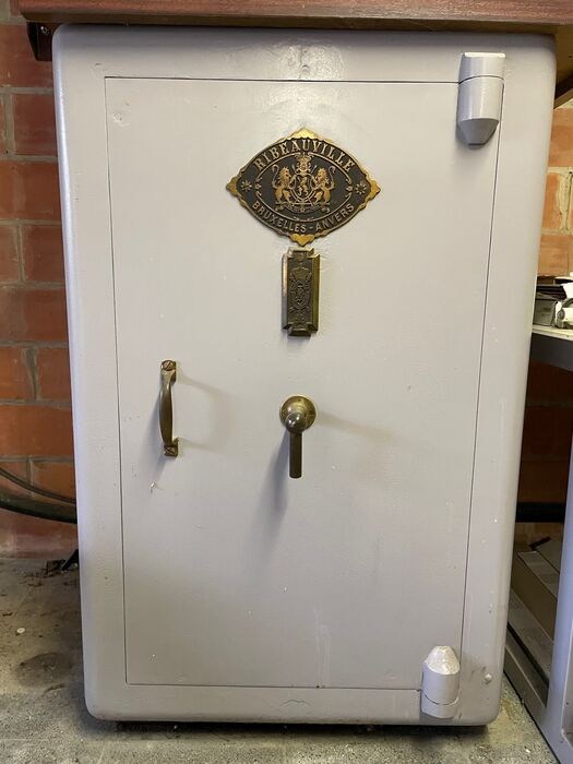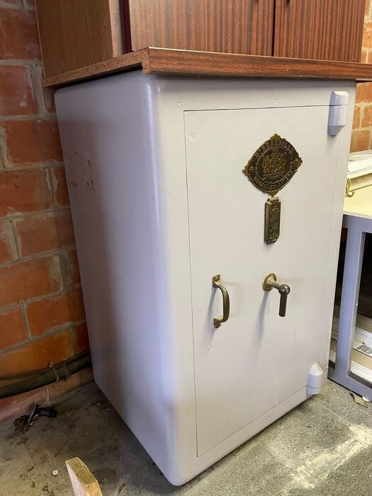 Oude brandkast/kluis die nog stond in de garage van het huis dat we recent kochten.