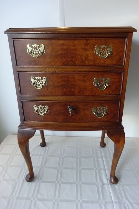 Buiten gewoon mooi antiek mahonie kastje met 3 laden