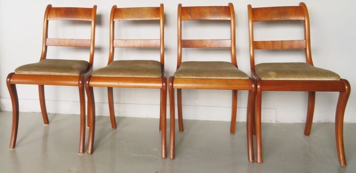 De afmetingen zijn: hoogte 86cm, zithoogte 49cm, breedte 46,5cm en diepte 52cm. Ze zijn in redelijke doch stevige staat zoals afgebeeld.