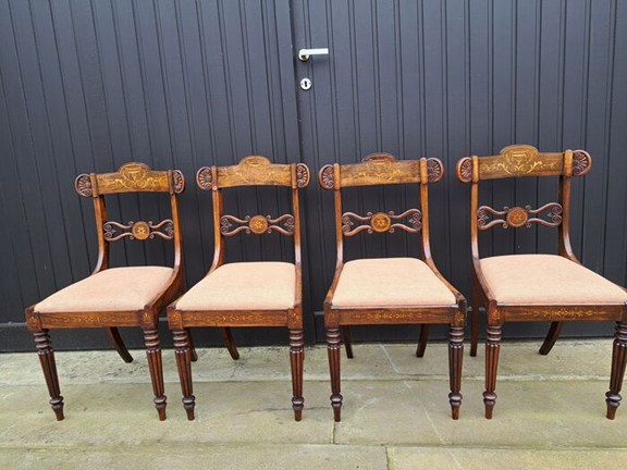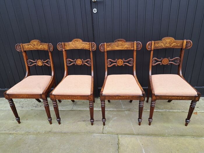 Set 4 19e eeuw Stoelen in Pallisander Hout Met Inleg van Citroenhout