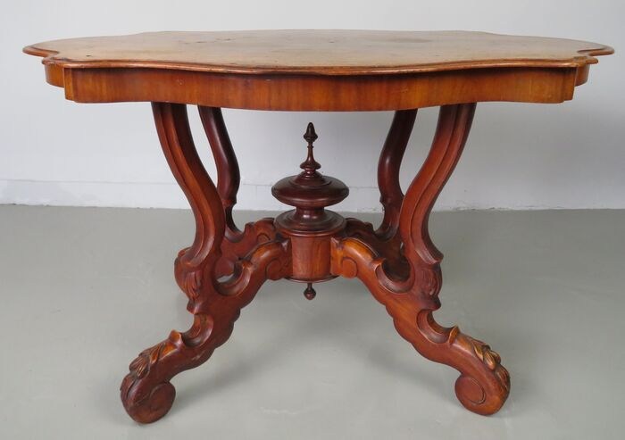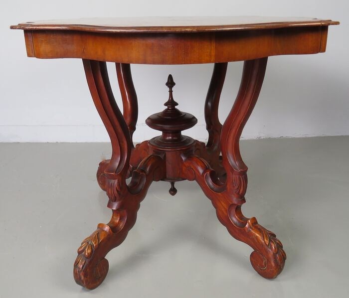 Deze tafel heeft een mooi gecontourneerd blad.