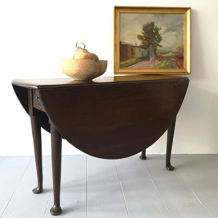 Een zeer fijne en goed geproportioneerde mahoniehouten tafel uit het midden van de 18e eeuw (circa 1750) op de manier van Giles Grendey met een uitstekende kleur en patina. De tafel is gemaakt van het beste Cubaanse mahonie. De poten zijn ongewoon gespreid en let op de afgeronde hoeken aan de bovenkant van de poten, de bovenkant van de tafel is opmerkelijk vlak gebleven en de duimstok is in uitstekende staat. De scharnieren zijn origineel met kleine centrale lade voor bestek