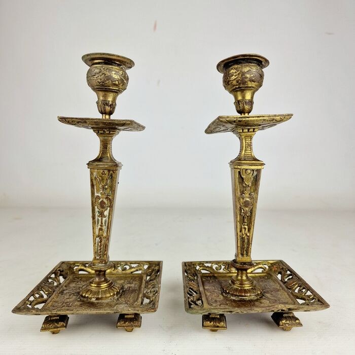 Pair of elegant gilded table candlesticks Ca. 1830.