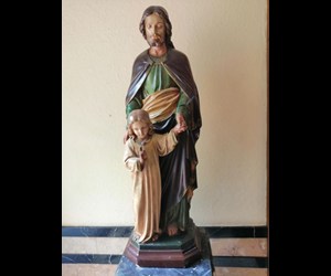Beeld, St Jozef met Kindje Jezus (85 cm.) - Gips - Circa 1900