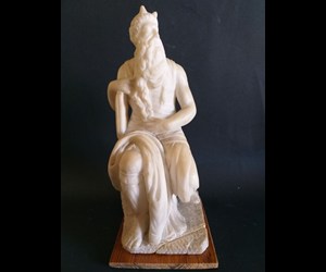 Beeld, Mozes met de tabletten van de wet - Albast, Hout - Eind 19e eeuw