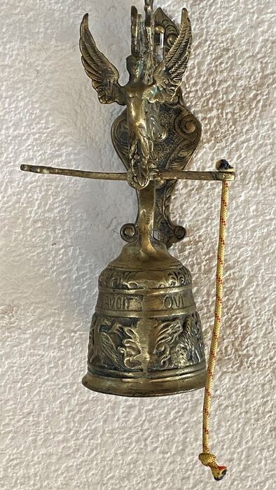 Bronzen eeuwenoude kloosterbel met bovenop een aartsengel.