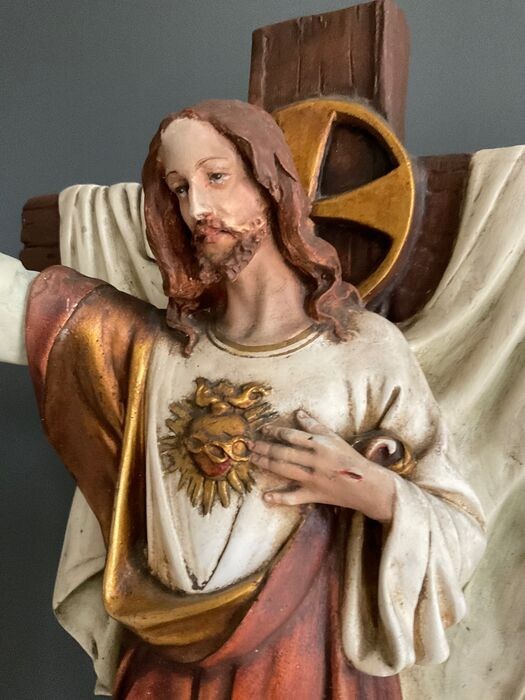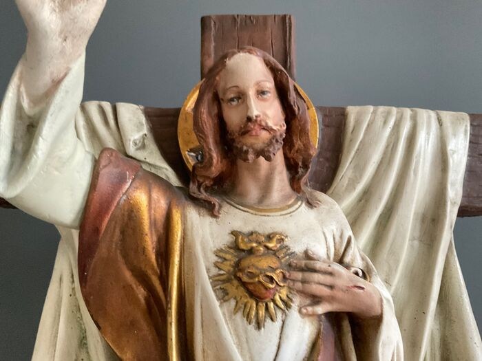 Jezus Christus met Heilig Hart 19eeuw gips 71cm