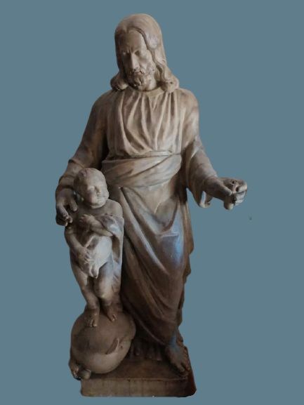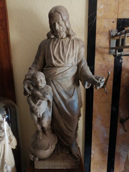 Prachtig Antiek 19e Eeuw Kerkbeeld Heilig Beeld Jozef met Kindje Jezus