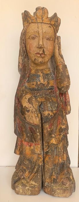 Romaanse Maagd in polychroom fruithout