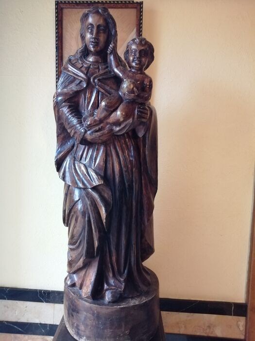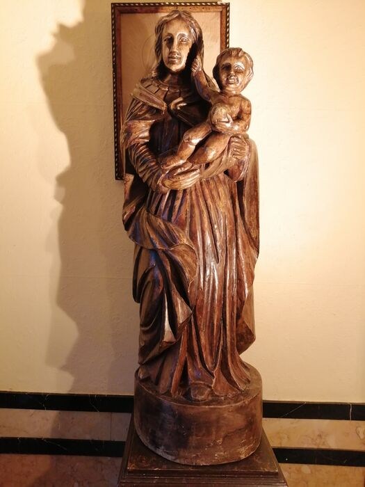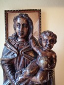 huge 102 Cm 40.1 Inches, antique late 19 century Belgium monastery carved wood virgin mary madonna with child jesus sculpture ,