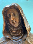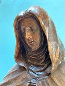 Geheel uitgesneden inhout, de achterkant is hol, zie foto’s.
