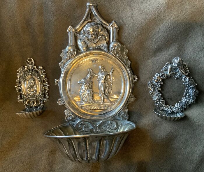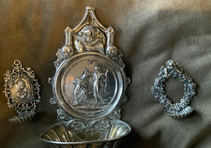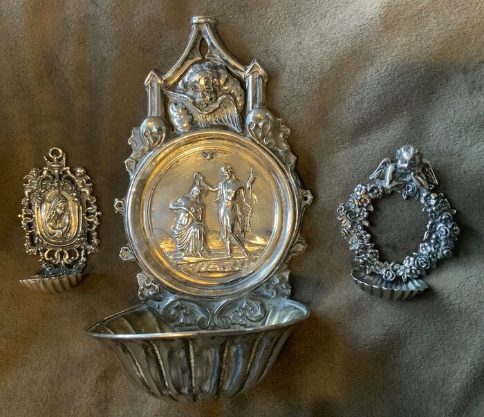 Drie zilveren wijwaterbakjes