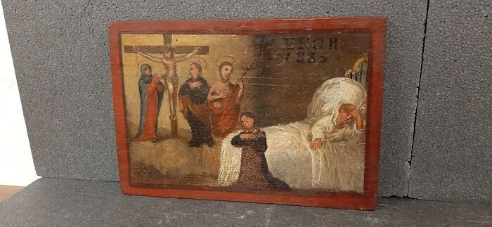 Ex voto of gratie verkregen uit de eerste helft van de 19e eeuw ( gedateerd 1835 ), olieverf op hout. Het is (zie onderwerp) een offer gebracht door een moeder aan heiligen en de gekruisigde Christus door voorbede voor haar zieke zoon en het redden van zijn leven. Typisch heilig artikel in gebruik in Italiƫ, waar de gelovigen vaak, na een vermeend wonder, lokale schilders de opdracht gaven om dit soort het gebaar of het vermeende wonder te vertellen. het schilderij meet 31x21 cm, heeft geen gebreken in de polychromie en is nooit gerestaureerd. Vanwege de huidige regelgeving kan het niet buiten de Europese Unie worden verzonden.