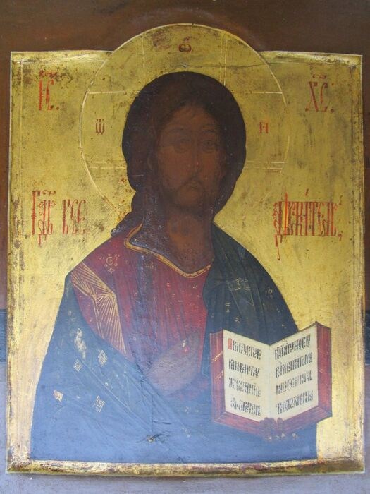Antiek Russisch icoon Christus Pantocrator, 19e eeuw