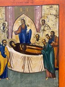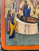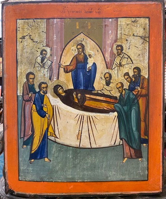 De icoon is in het Kerkslavisch gegraveerd op de bovenrand van de icoon.