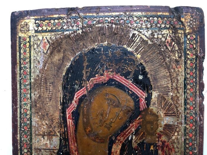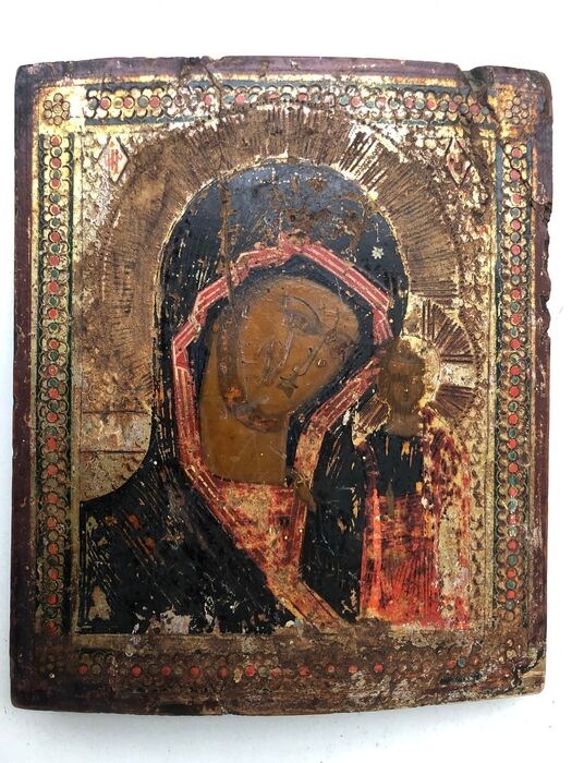 Icoon, Onze-Lieve-Vrouw Hodegetria van Kazan - Hout - 19e eeuw