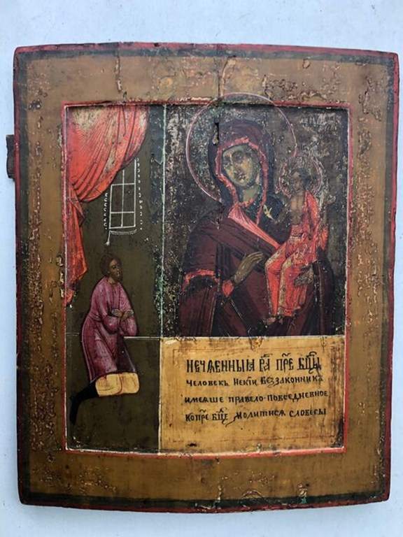 Russisch icoon Onze Lieve Vrouw van Onverwachte Vreugde 19 eeuw.