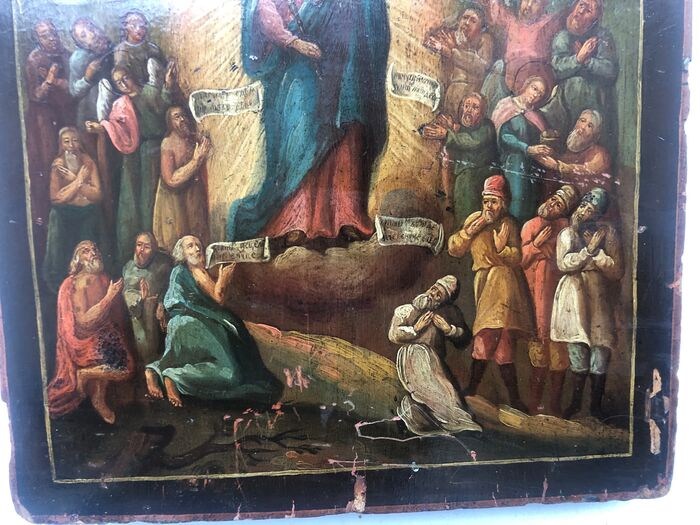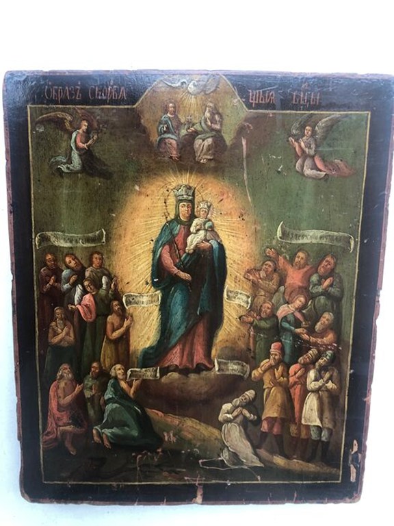 Russisch icoon Onze Lieve Vrouw van Vreugde aan alle Lijders 19 eeuw in goede staat.