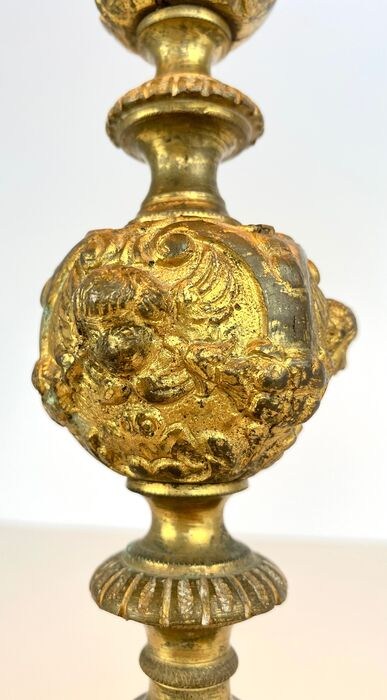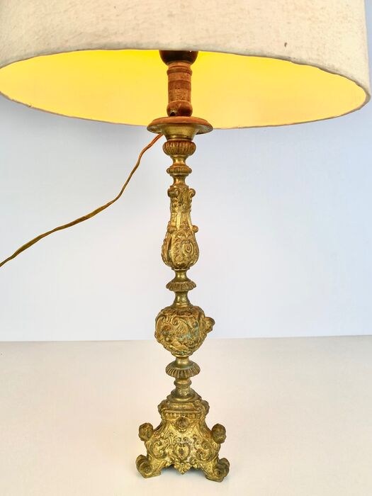 Oude verguld bronzen kandelaar getransformeerd in een lamp.