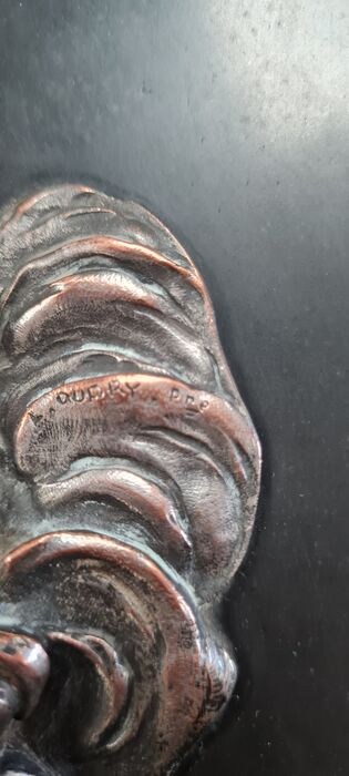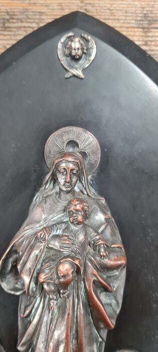 Bronzen ketel op zwarte marmeren plaat