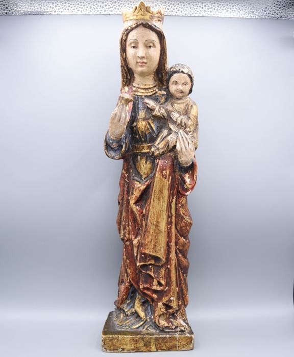 Oud gotisch snijwerk - Maagd van de Roos met het Kind.
