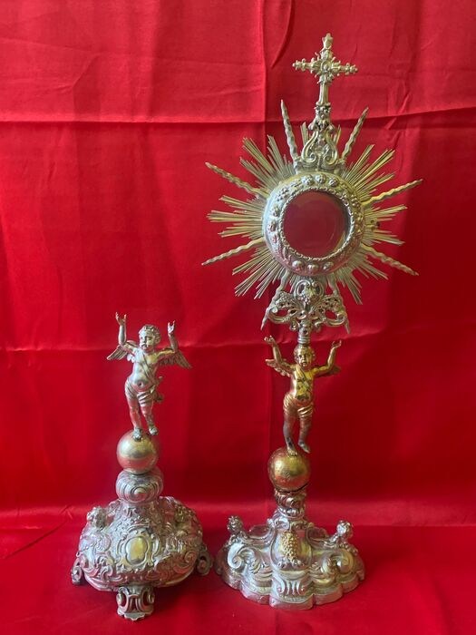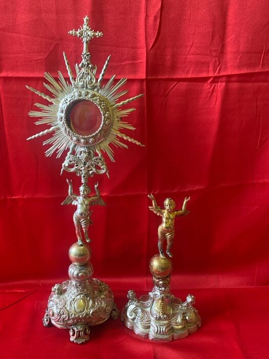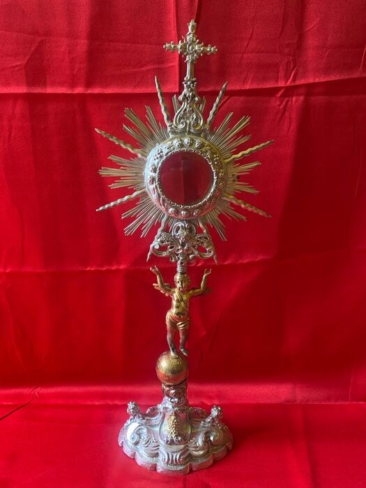 Monstrans in zilver met vergulding, deels verguld brons (verguldverguld), Napolitaans vakmanschap uit de achttiende eeuw.
