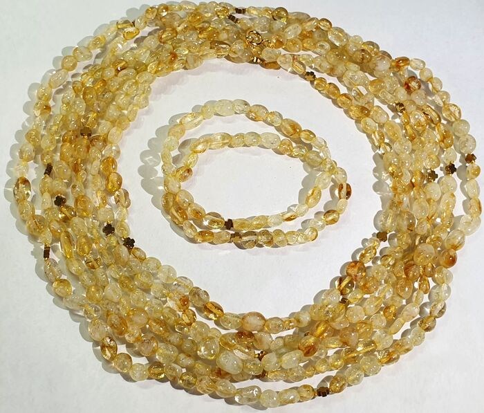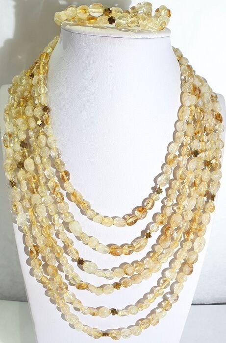 Ik bied ter veiling aan een exclusieve zeer lange halsketting en 2 armbanden van vergulde hematiet Griekse kruisen (bescherming & balans) en citrien kralen van de hoogste kwaliteit; De sluiting is gemaakt van verguld 925 zilver.