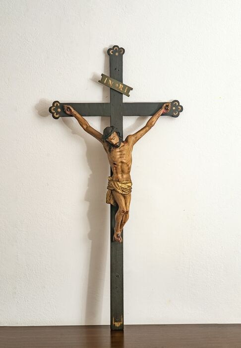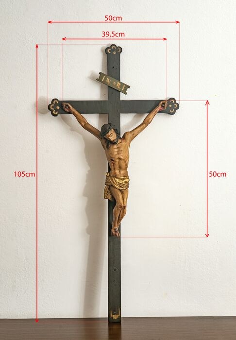 Oud kruisbeeld - Prachtige Christus in polychroom hout (105 cm.) - Hout - 19e eeuw