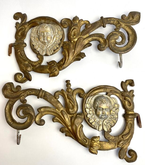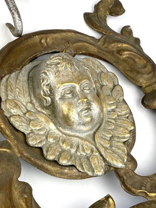 Paar metalen friezen in reliƫf die de hoofden van gevleugelde engeltjes voorstellen.
