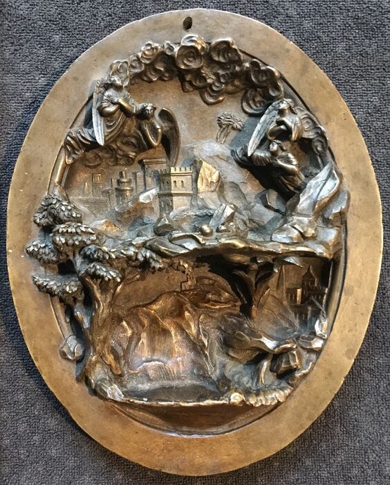 Bas-reliëf in ovale geode, met sterk reliëf.