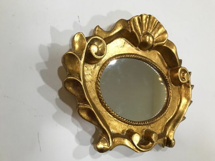 Spiegel aangepast zoals te zien op de foto.De achterkant heeft de eerste patina,alles origineel zonder restauratie,alles intact en alle originele bevestigingsmiddelen,het heeft ook zowel de haak om aan de muur te hangen,professionele verzending met polystyreen en noppenfolie